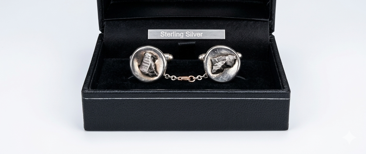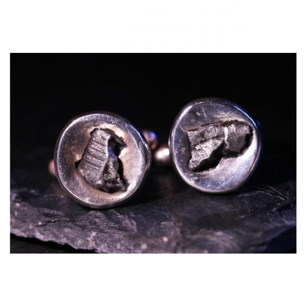 A superb pair of solid silver cufflinks set with two genuine Campo del Cielo fragments.